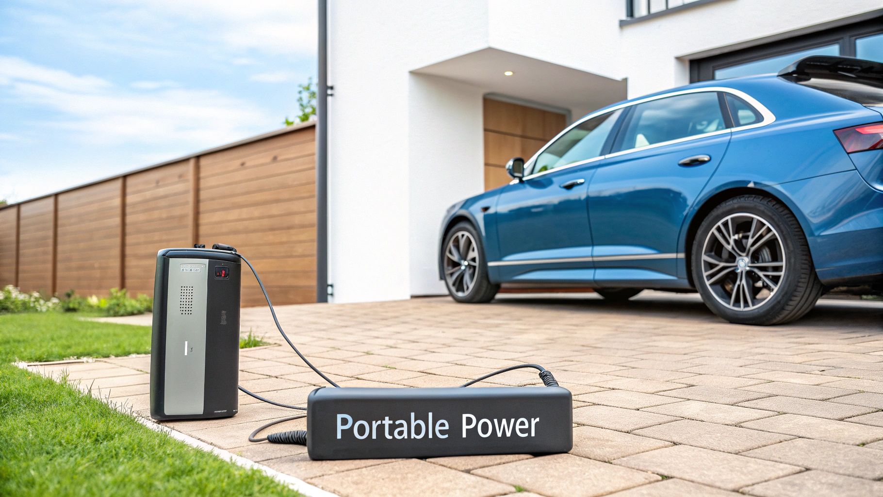 Think of a battery pack for car charging as a jerrycan of electricity for the modern age. These powerful, portable units—often called mobile EV chargers—are designed to give an electric vehicle (EV) a meaningful charge, wherever it happens to be.
