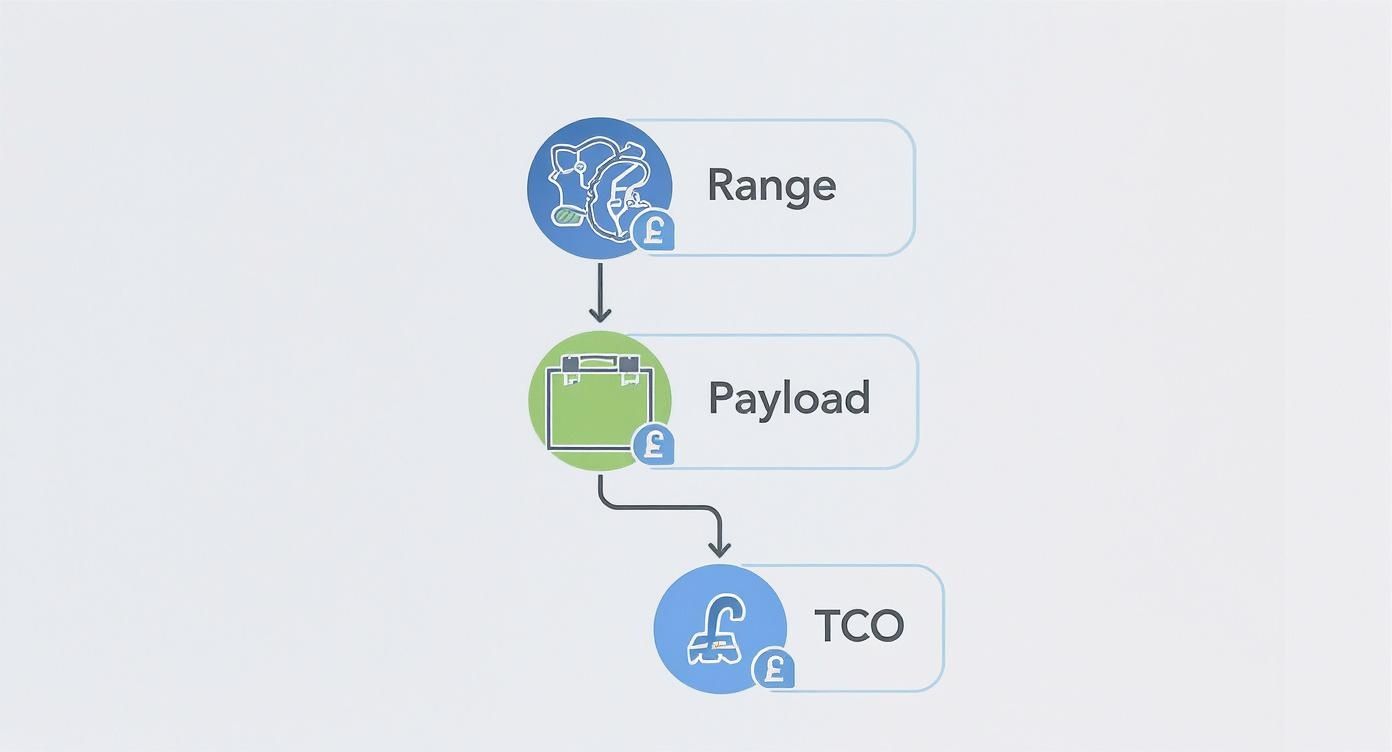 This decision tree shows how crucial factors like Range, Payload, and Total Cost of Ownership (TCO) all feed into your vehicle choice.