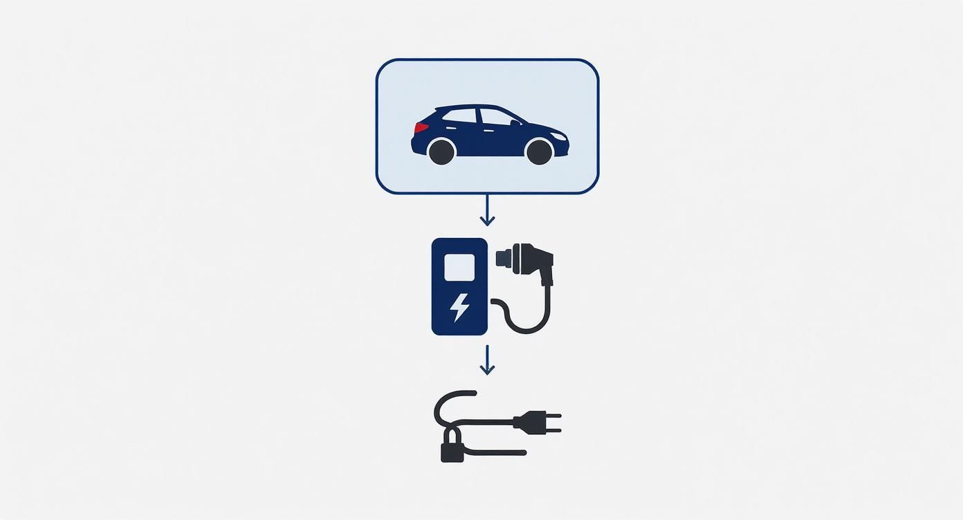 The need for this kind of flexibility is more common than you might think. UK surveys show that 40-50% of EV owners have been stuck in situations where a longer cable would have saved the day, especially in residential areas where your parking spot is not always next to your charger. This has fuelled growth in the EV accessory market, giving drivers more choice. You can find out more by exploring the latest UK government electric vehicle infrastructure statistics.