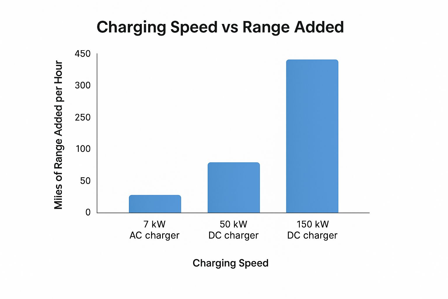 Charger Type | Typical Power (kW) | Approx. Time to Add 100 Miles |