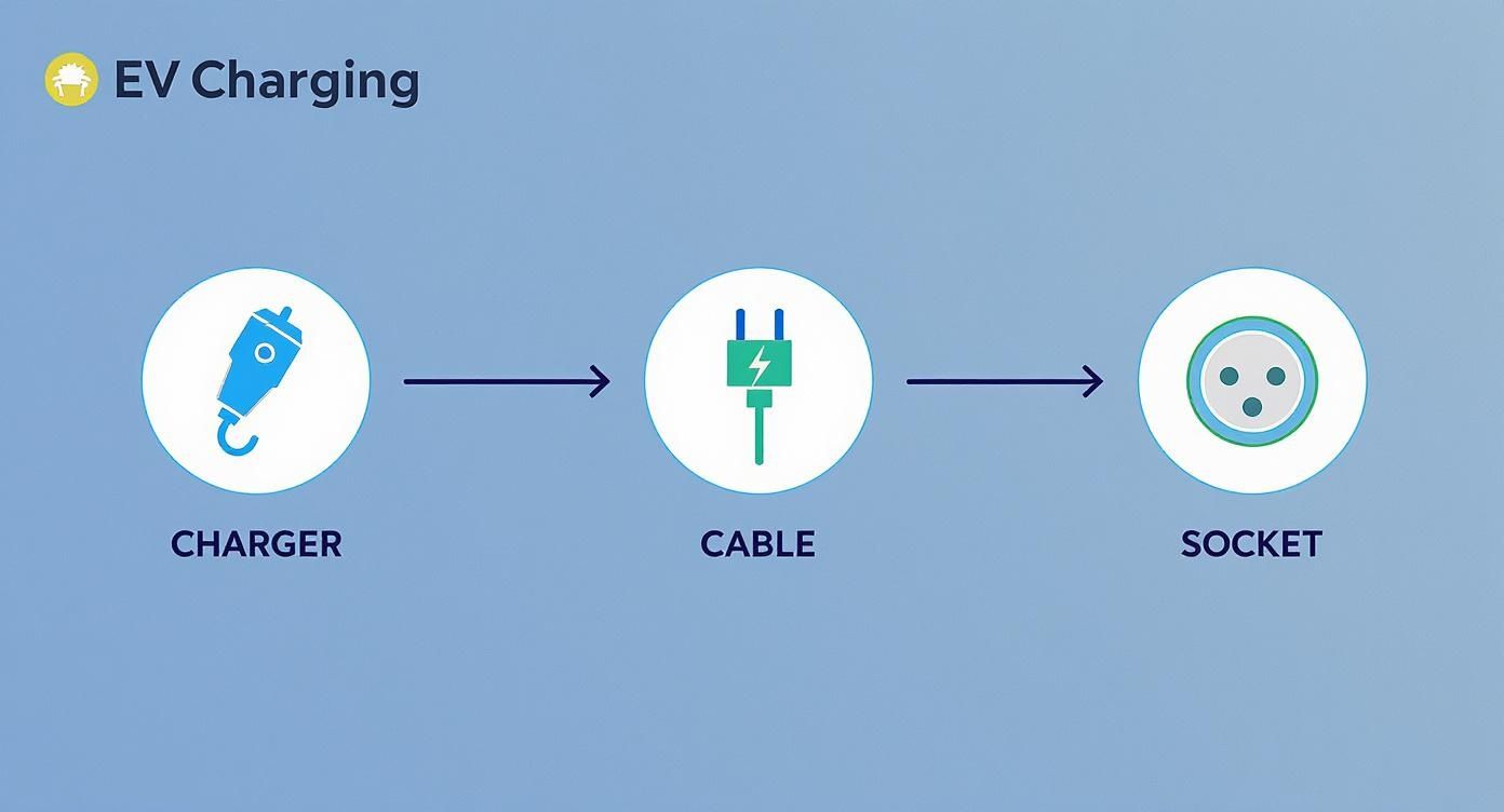 Just like you can’t plug a UK appliance into a European wall socket without an adaptor, EV chargers have specific connectors that have to match the vehicle’s inlet. This guide will walk you through everything you need to know, from the standard socket types you’ll find across the UK to the practical choice between a tethered charger (with a built-in cable) or a more flexible socket-only unit for your home or business. Nailing these fundamentals is essential.
