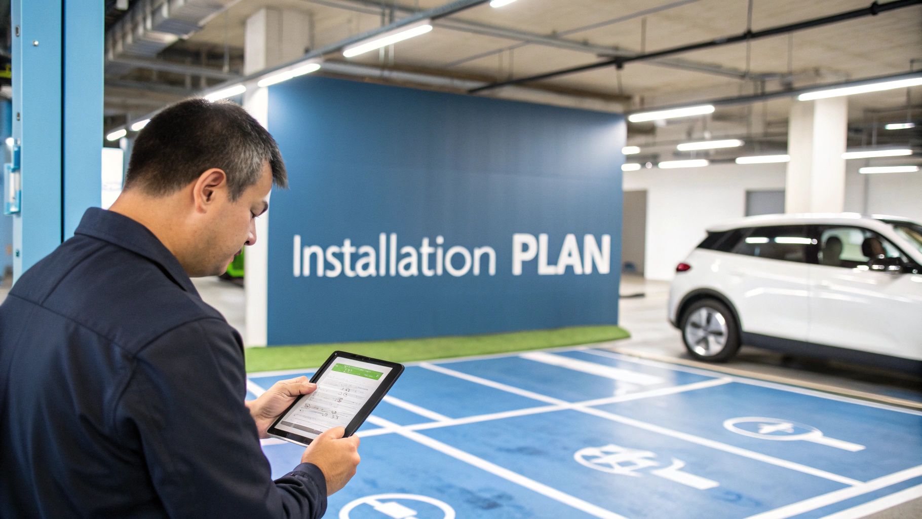 The first, and most critical, step is a proper site survey. This assessment is all about understanding your building's current electrical capacity and flagging any potential roadblocks. It tells you whether your existing supply can handle the extra demand from EV chargers or if you’ll need an upgrade—a major factor for your budget and timeline.